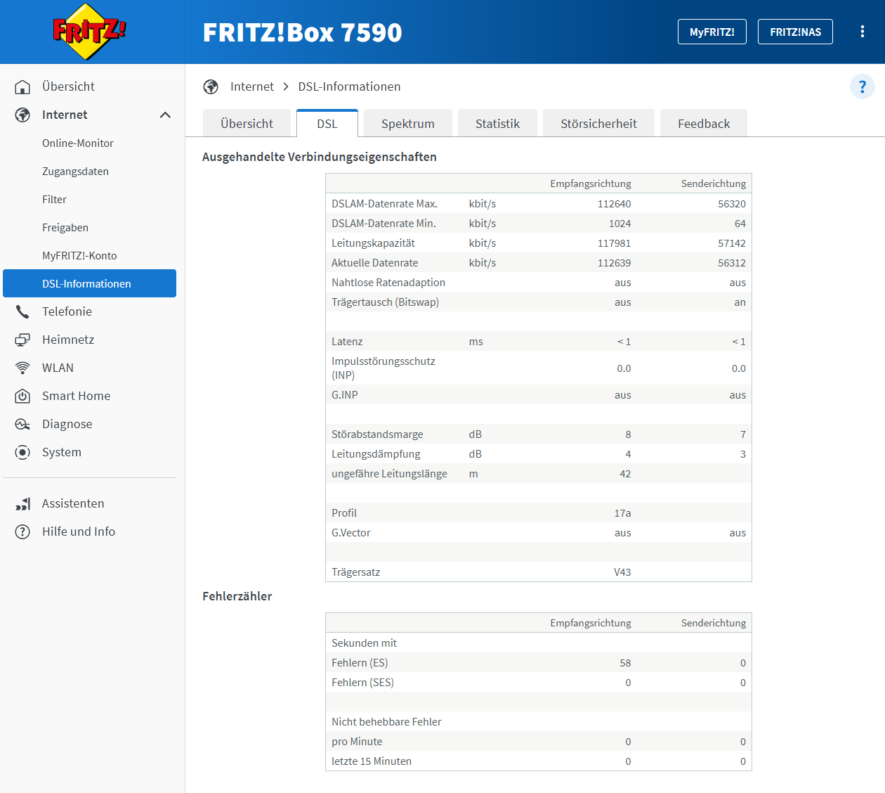Techniker vom Anbieter hat Einstellungen der FritzBox 7590 überprüft, Herstellersupport der Box auch.