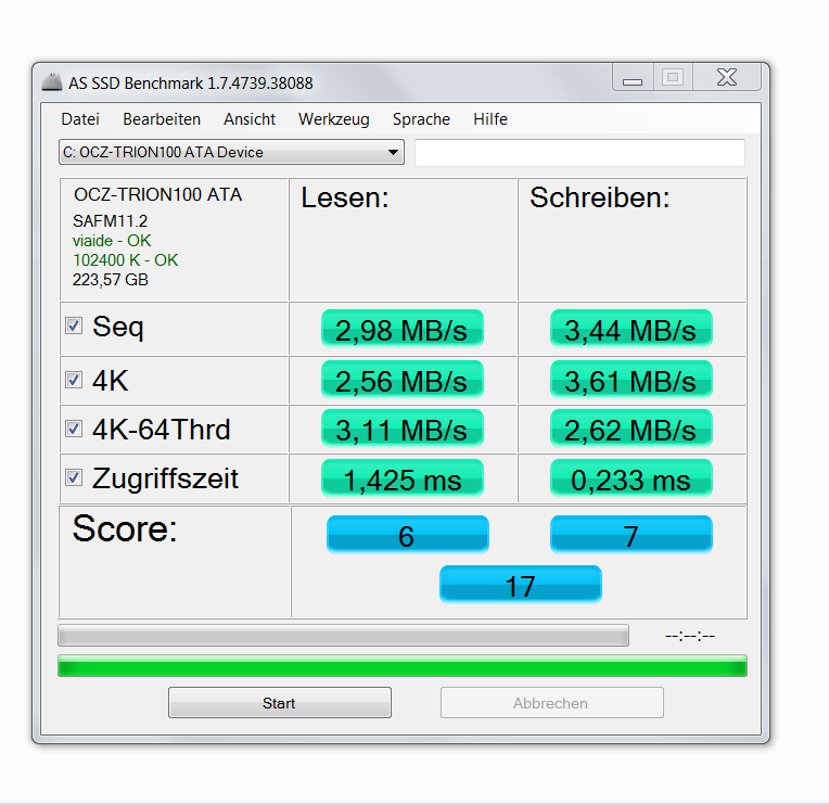 Ich habe eine OCZ Trion 100 dafür vorgesehen.