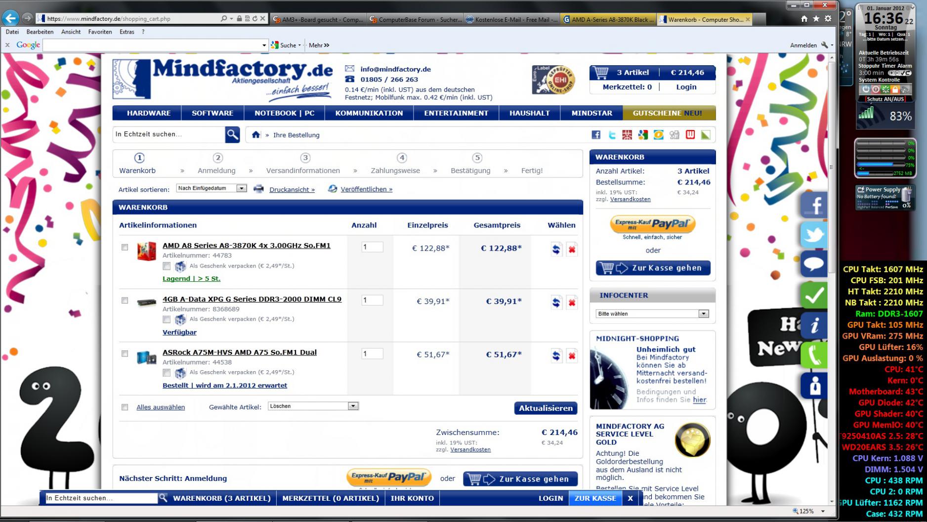 - FireWire, Raid, eSATA (letzteres wäre aber quasi vom Konzept her schön, das geplante Gehäuse hat eSATA und unbelegte Frontanschlüsse sind Mist.)