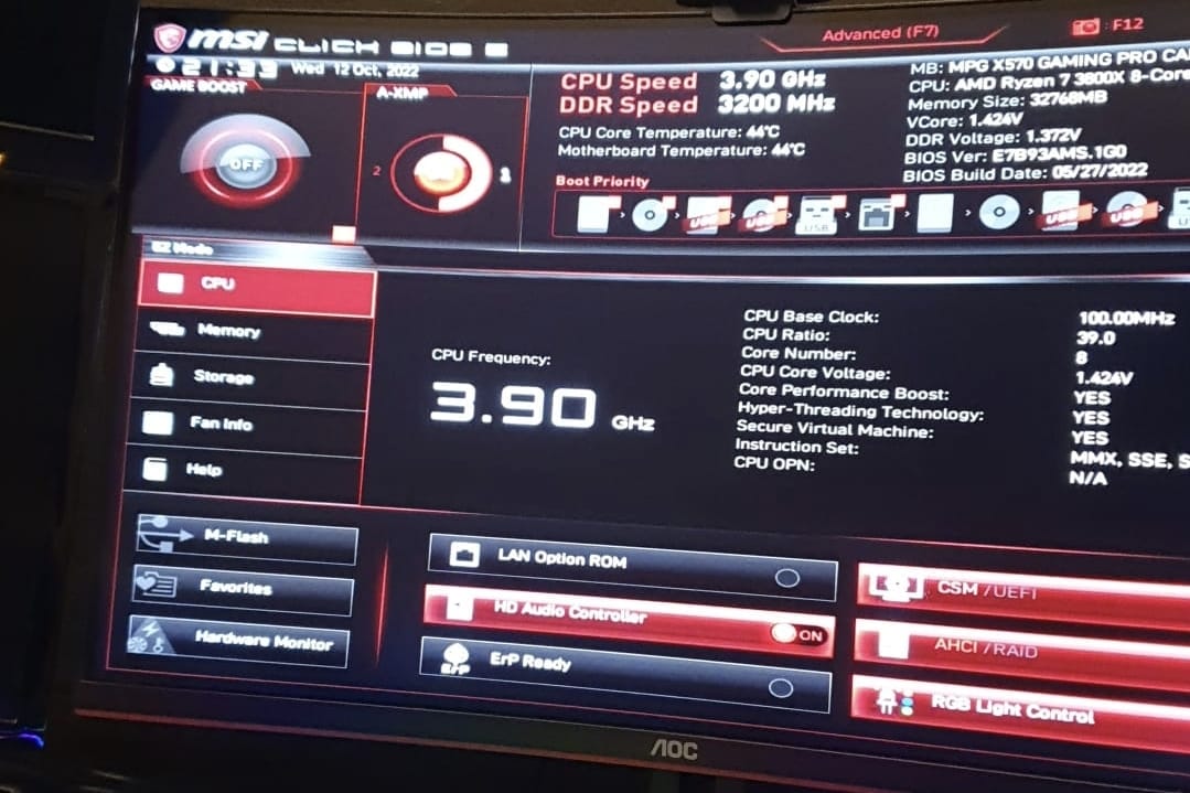 - Mainboard: MSI MPG x570 Gaming Pro Carbon Wifi