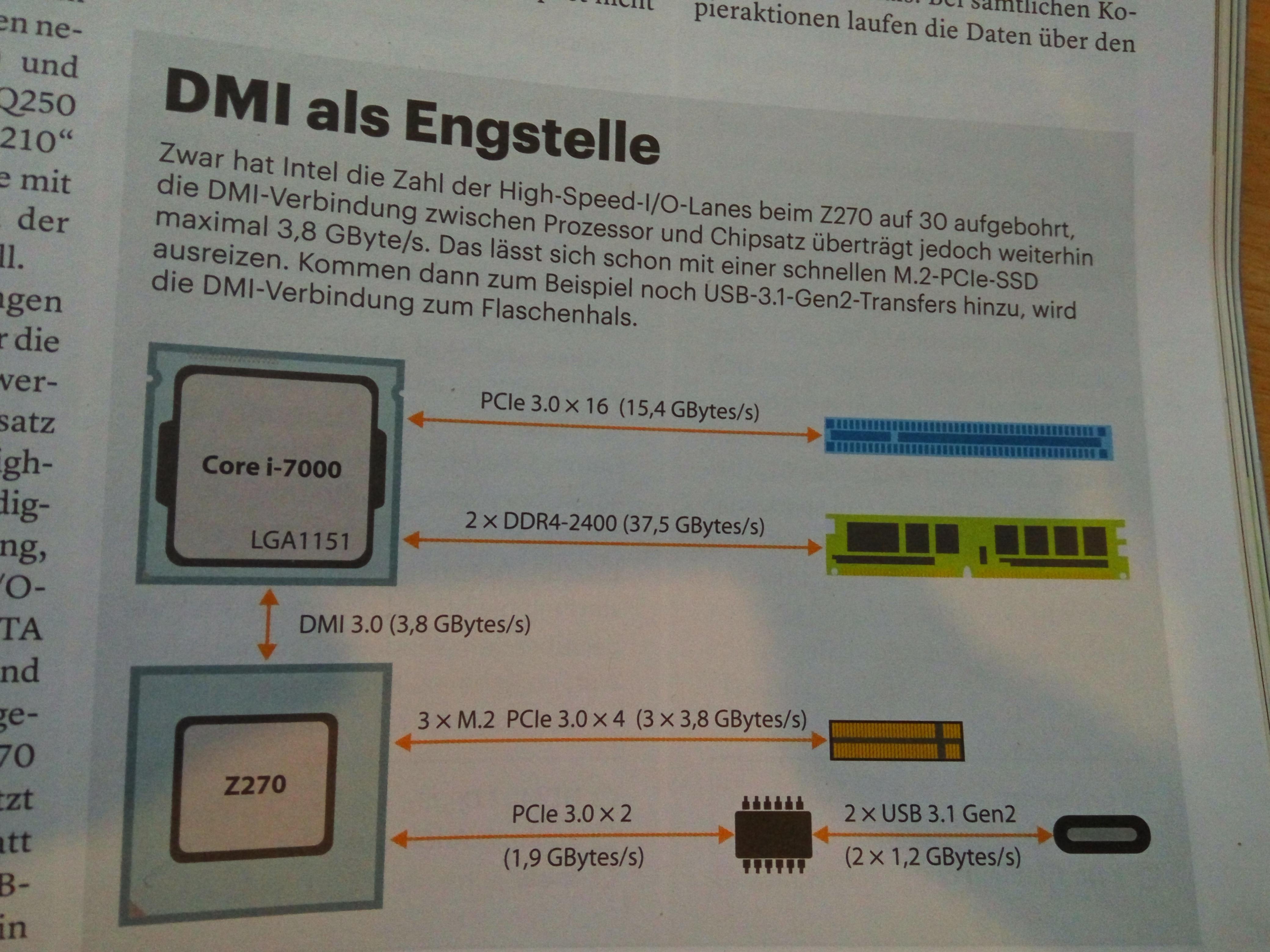 nebenbei erwähnt: DMI schafft 3,8GByte/s also PCIe4x .. Wo soll man da bitte 20 Lanes anbinden können?