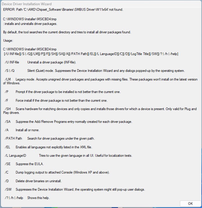 manuell über den Geräte-Manager zu aktualisieren, die MSI Dateien im korrekten Verzeichnis auszuführen landete in identischer Fehlermeldung, obwohl er dann als Pfad E:\**** angab wo gar nichts liegt.