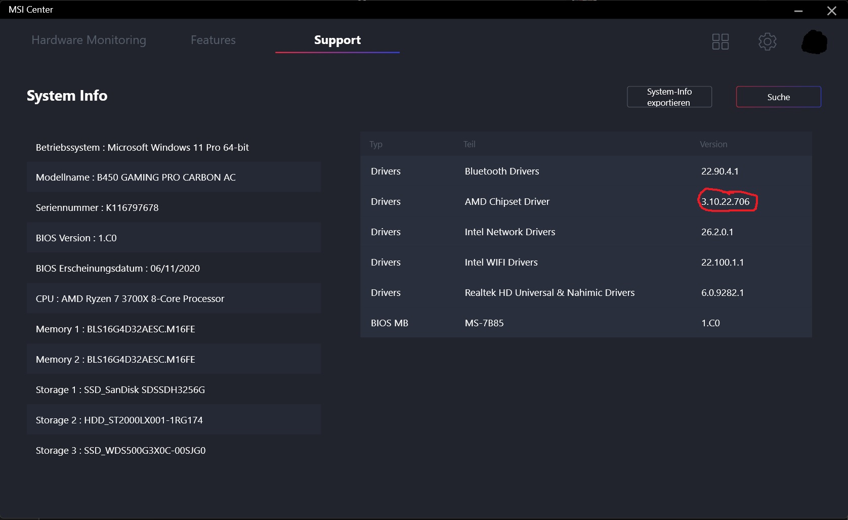 Ryzen 9 5950, MSI X570-A Pro, 64GB RAM Standard 3200MHZ, Kein Overclocking oder andere "Schlangenölsoftware zusätzlich installiert.