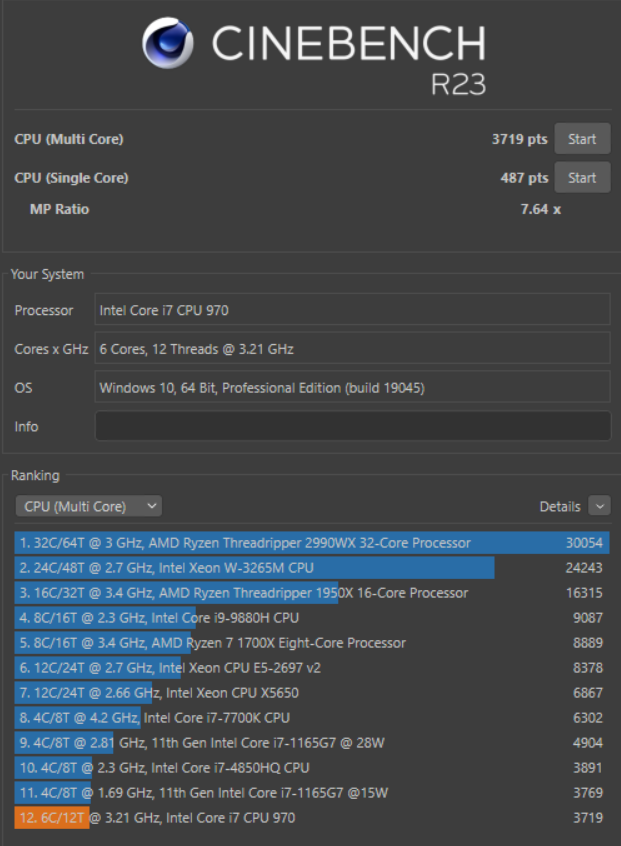 Hier mal Cinebench R23 Benchmark auf meinem 2010er-High-End-Desktop