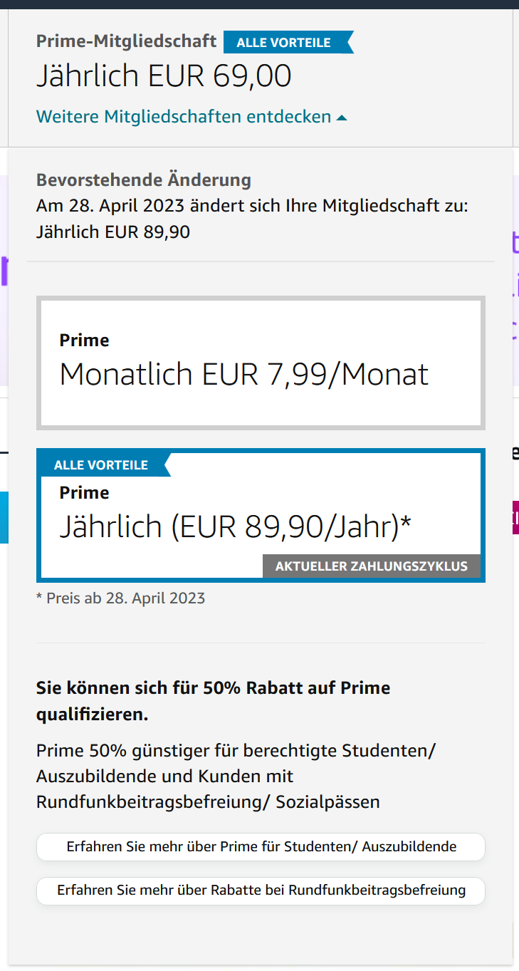 Sehe da kein Problem, der Preis war jetzt 6 Jahre konstant, zum Versand gibts noch ein paar gute Eigenproduktionen (zuletzt Rad der Zeit, the Boys, Picard, The Expanse...) und Amazon Music nutzen insbesondere die Kinder öfter - das Ganze hat bisher (bei jährlicher Zahlung) 5,75€ im Monat gekostet und jetzt knapp 7,50€. Dazu noch die extrem guten Prime Day Angebote (die in der Regel besser sind als am Black Friday) - da spart man (bei Dingen die man eh kaufen würde) schnell mal mehr als das Jahresabo kostet (im Vergleich zum normalen Preis, nicht im Vergleich zum Black Friday).