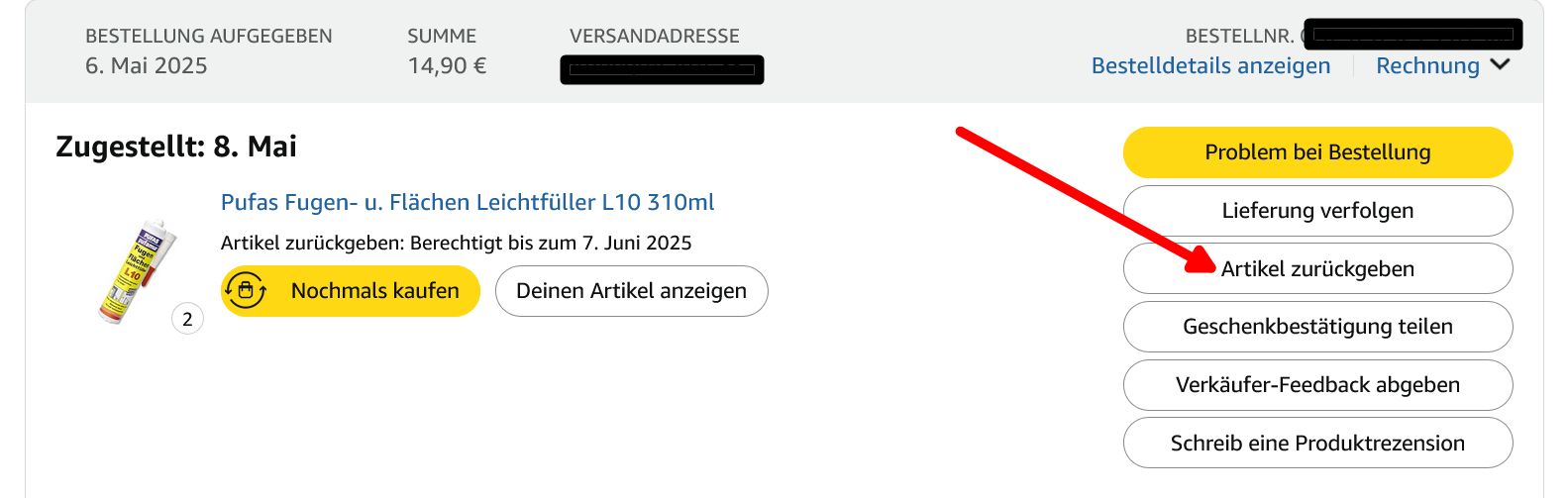 Senden Sie Artikel außerdem innerhalb des Rückgabezeitraums im Originalzustand zurück.