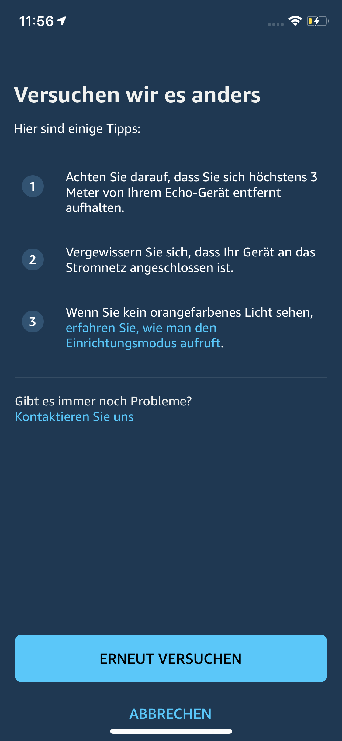 Ich benutze mein Echo dot 3 nun seit 4 Monaten und bin durch und durch damit zufrieden doch seit ich gestern mein WLAN umbenannt habe lässt sich mein Echo dot nicht mehr verbinden, ich habe ihn bereits zurückgesetzt und alles möglich versucht was Amazon als Hilfestellungen anbietet. Sobald ich mein WLAN Passwort eingebe läd es kurz und meine Alexa sagt, dass sie nicht mit dem WLAN verbunden ist.
