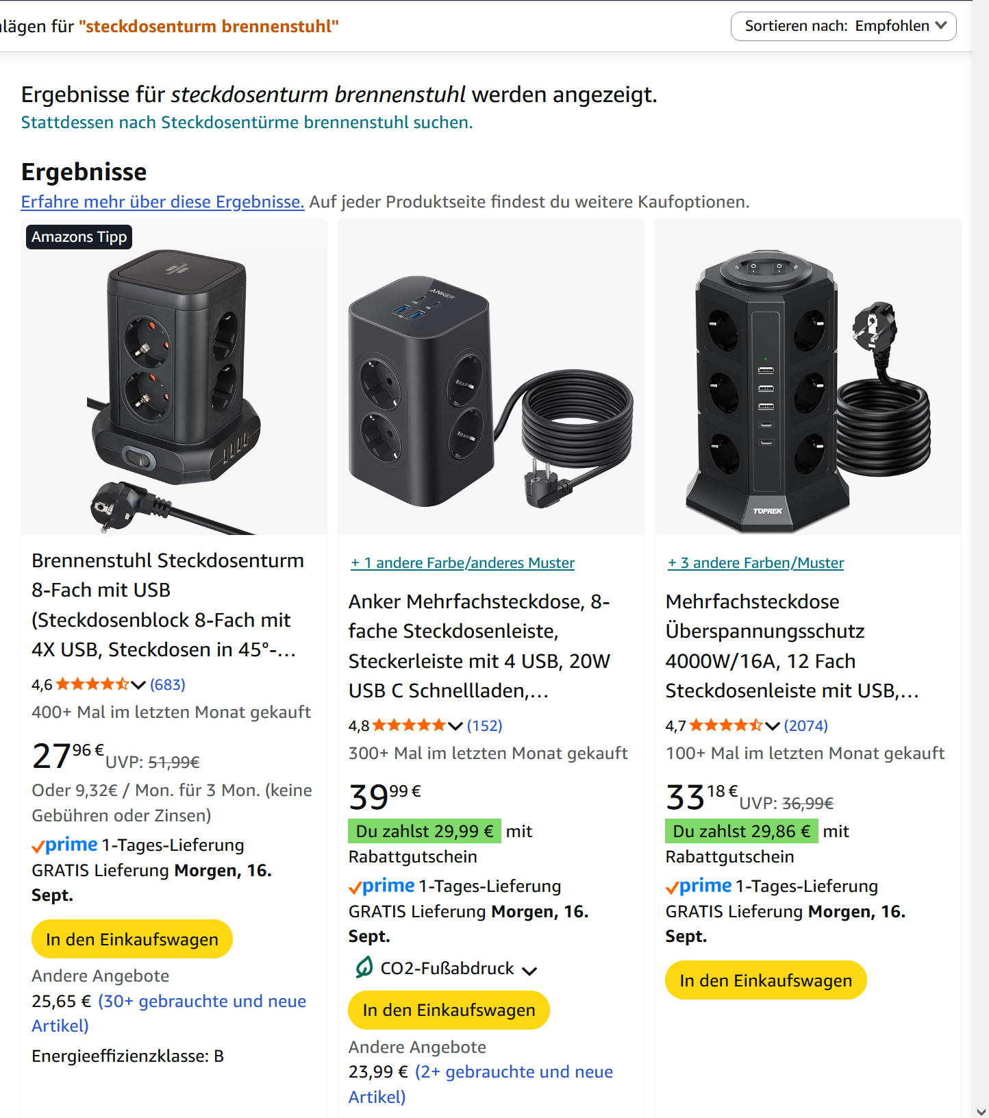 Mit genügend Gleitgel kann man sich die Steckdosentürme halt überall reinschieben...knoxxi schrieb:Wir haben gestern nach „Steckdosentürmen“ von Brennstuhl auf Amazon gesucht.