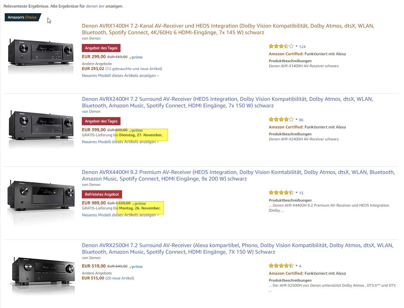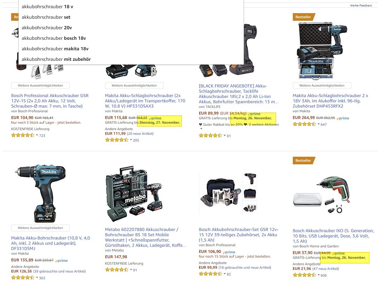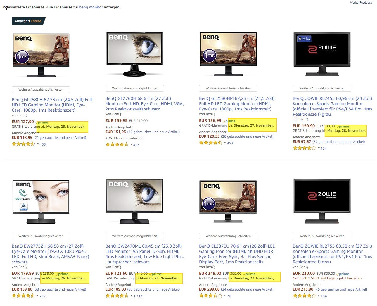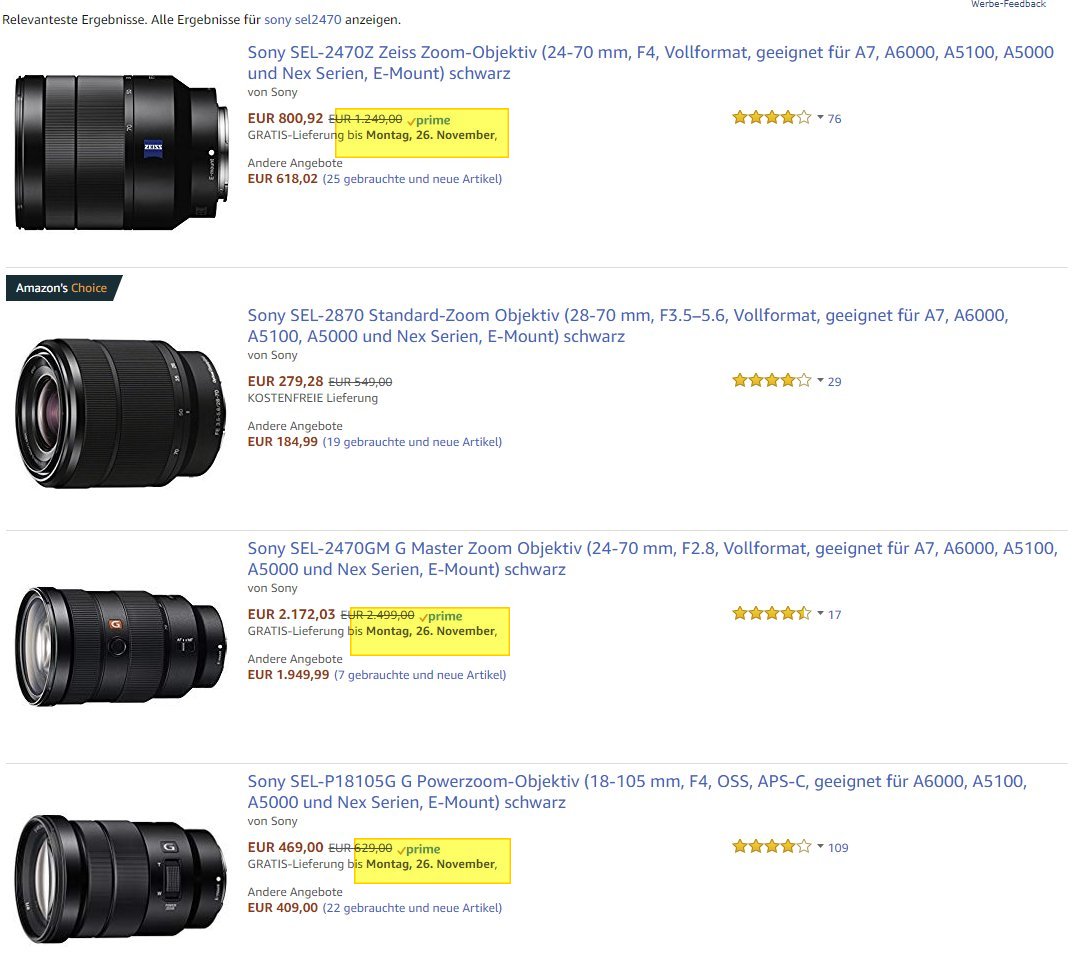 Aber es wird irgendwie schlimmer. Egal, welchen Artikel ich mir jetzt aktuell angucke - Kameraobjektive, Fahrradschuhe, Akkuschrauber, Monitore, Konsolen, AV-Receiver. Alle Artikel können - trotz Prime - frühestens Montag oder Dienstag geliefert werden.