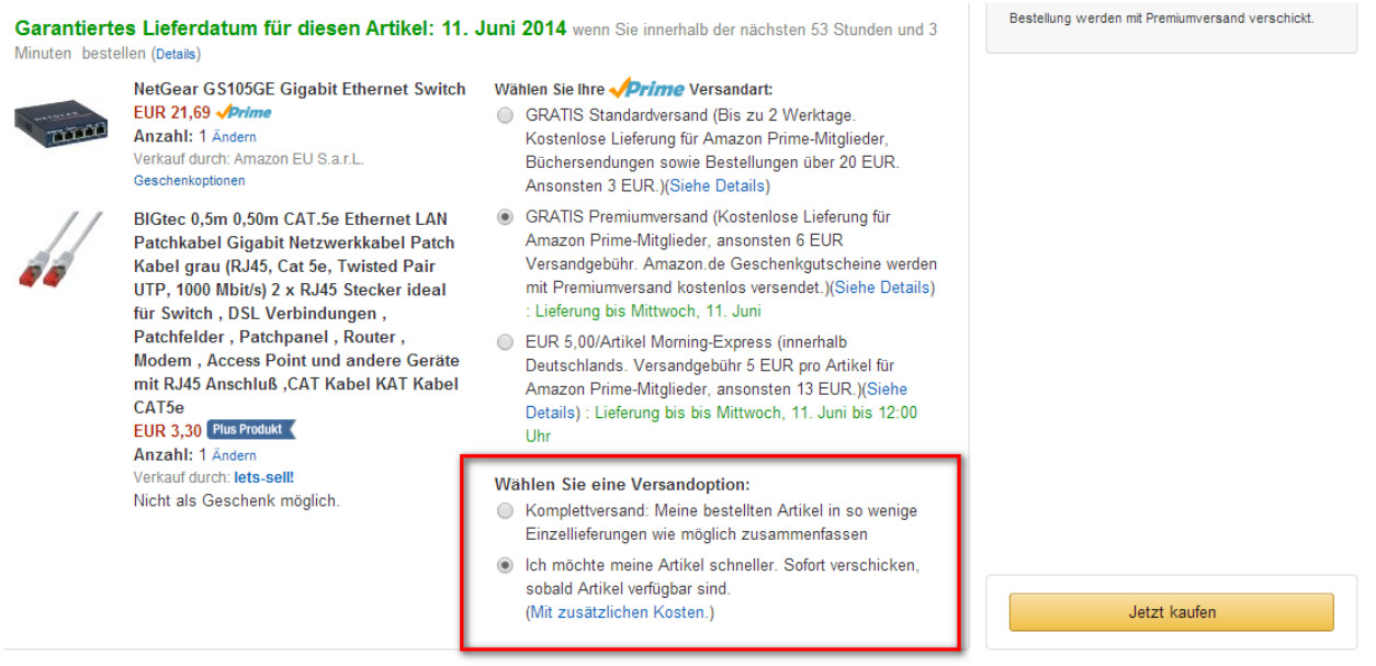 Voraussetzung ist natürlich, dass alle gewählten Artikel durch Amazon verschickt werde und nicht manche durch einen Marktplace-Teilnehmer.