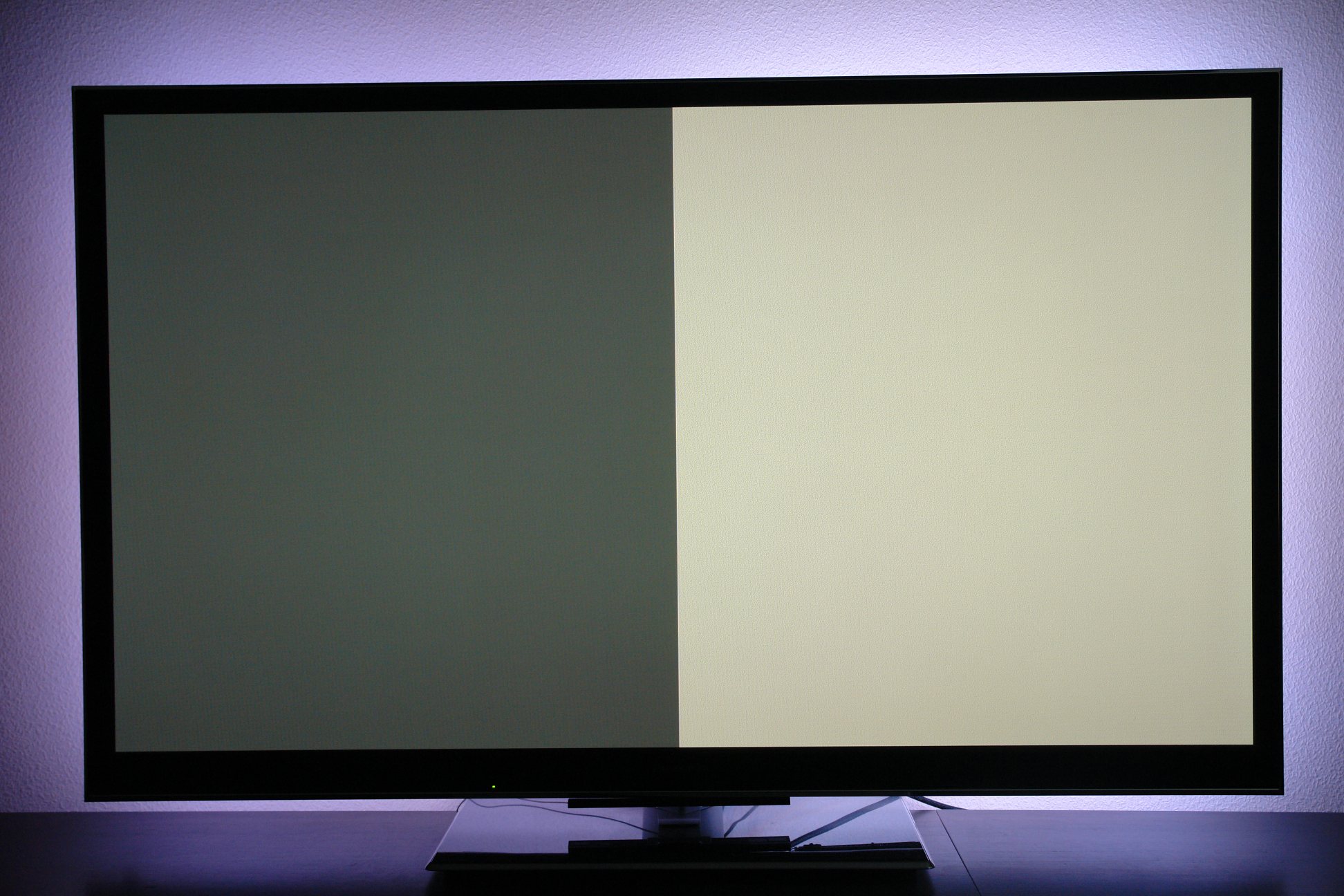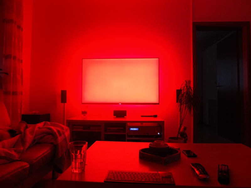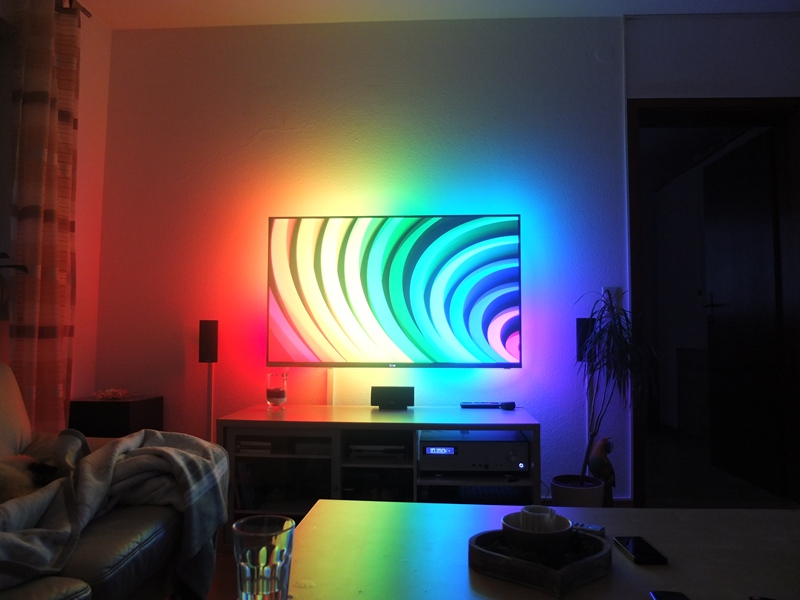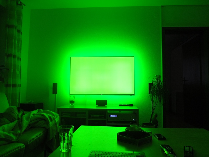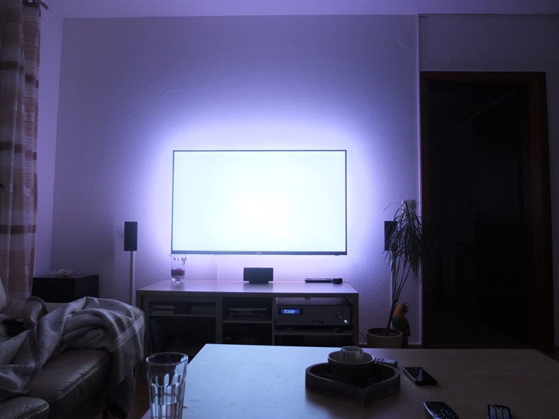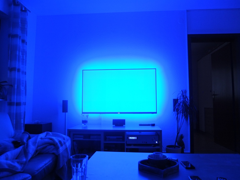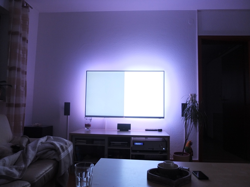 Wie man schön sehen kann, hab ich dort einen Blaustich im Ambilight. Die restlichen Farben passen wirklich sehr gut! Nur weiß ist eben bläulich...