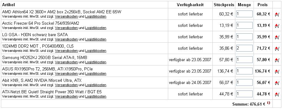 Preise sind mit Vorkasse suche zu diesem System noch ein günstiges Mainboard bspw. von Asrock und ein günstiges und leises Netzteil.
