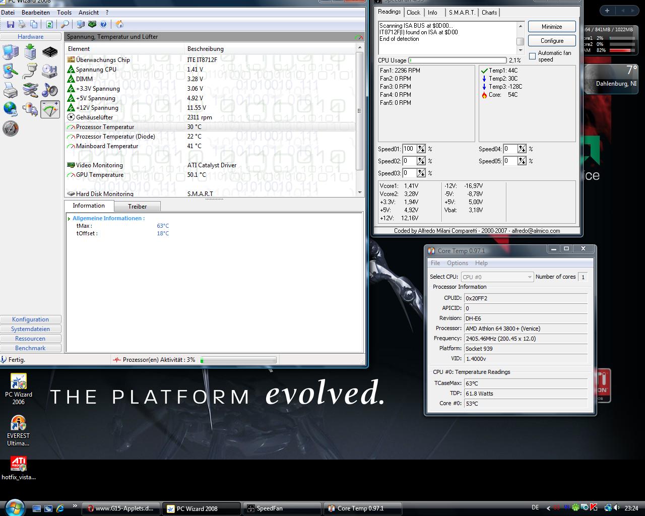 Na 53°C könnten auch stimmen ! weiso läuft deine CPU mit 1.4V ? normal sind doch 1.35 !