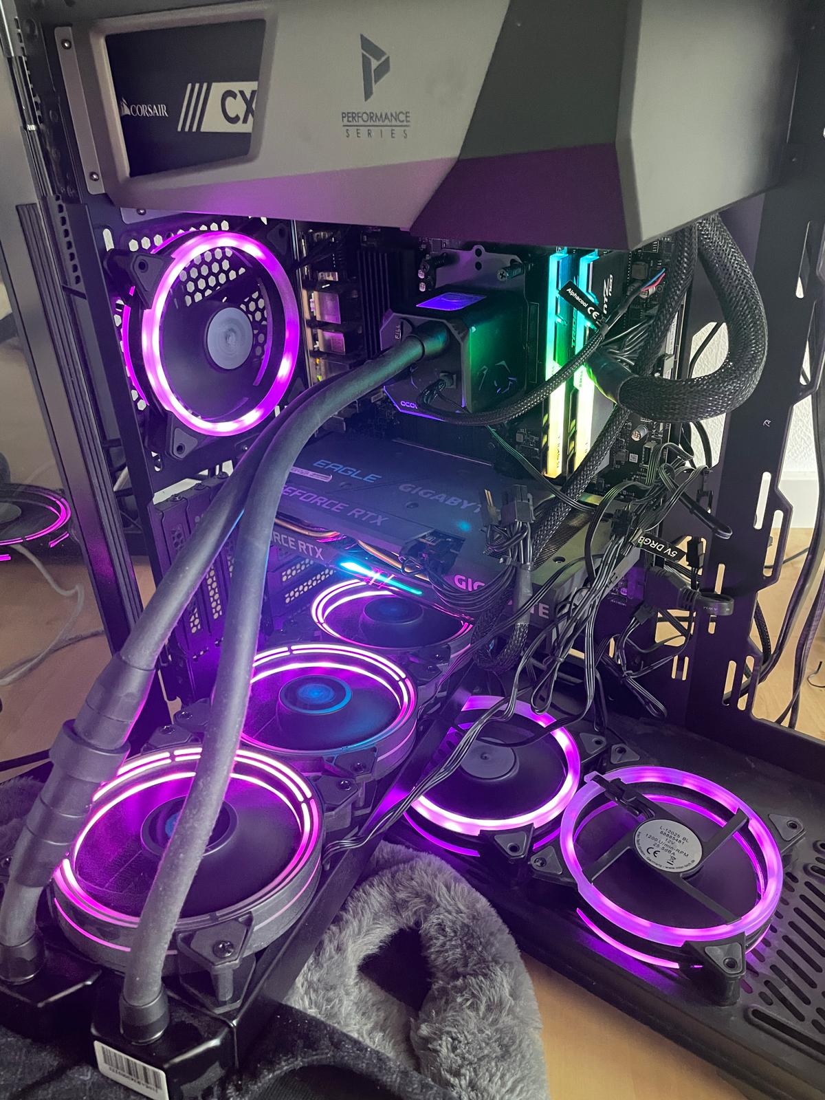 Zusätzlich ist die AIO falsch montiert, da bei dir die Luft oben in den Schläuchen staut und auf Dauer deine Pumpe schneller kaputt gehen wird