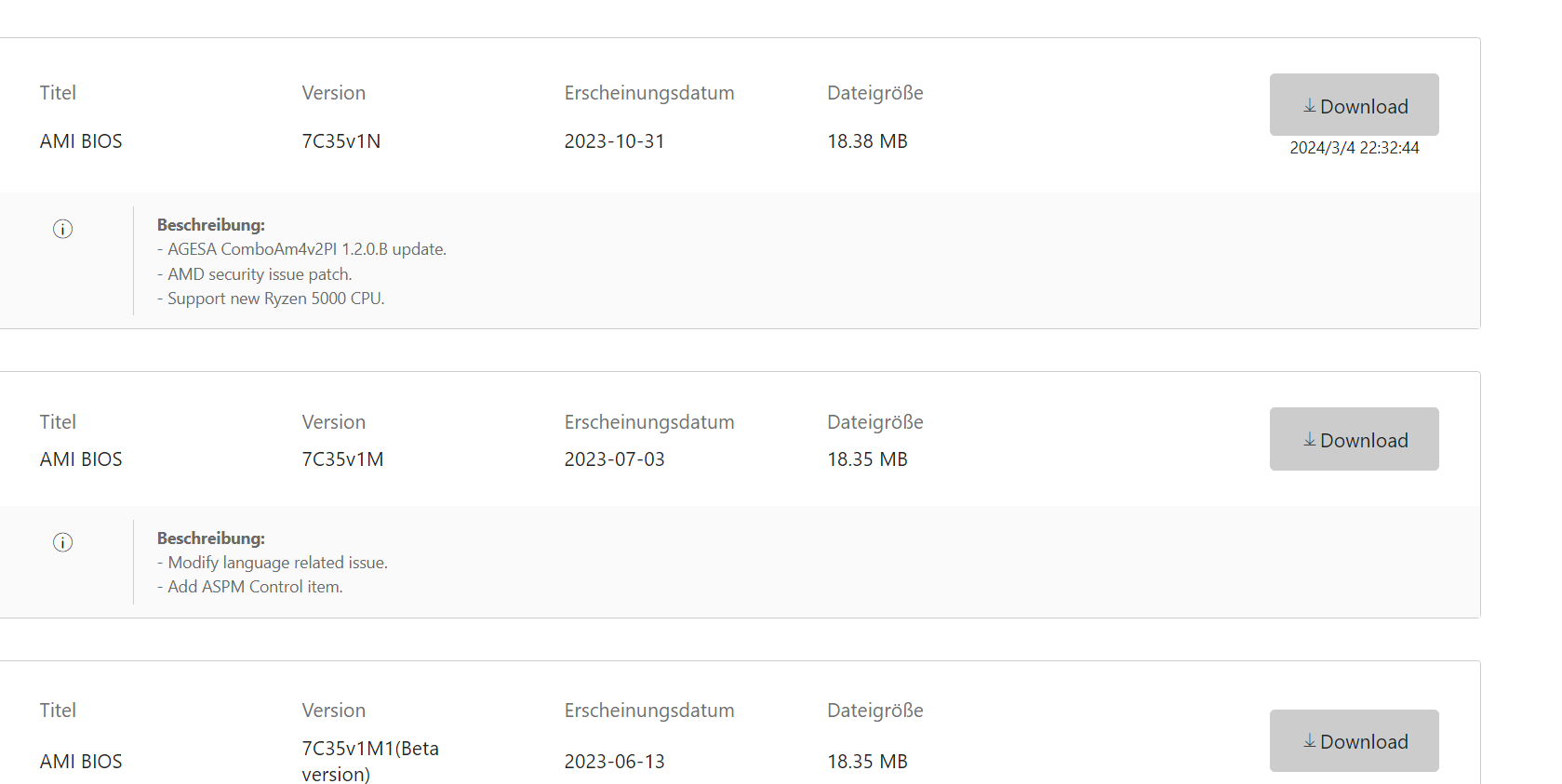 Was ich nicht ganz verstehe ist das Bios. Auf der MSI Webseite ist die letzte version vom 31.10.23 welche ich auch installiert habe. Wo auch AGESA ComboAm4v2PI 1.2.0.B update steht. aber auf der XX hardware luxx seite ist das neuste Bios