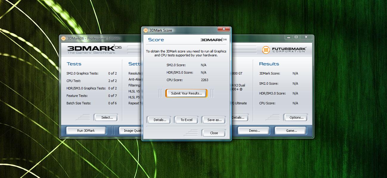 Außerdem hätte ich von Dir eine genaue Auflistung des 3dmark06-Runs, es ist im Gegenteil so, dass die CPU eine schnelle Karte bremst. In diesem Fall wäre aber der CPU-Score mit 2265 ausdrücklich normal.