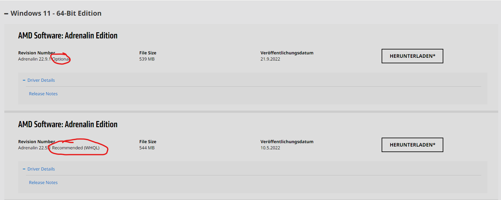 Der letzte WHQL Treiber ist die 22.5.1. (Zahlen stehen fĂŒr Jahr / Monat / Treiber).