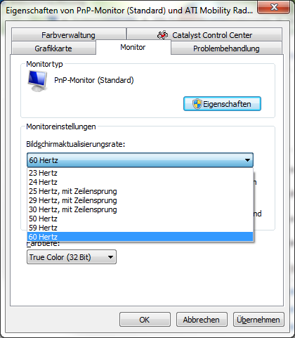 Nun ruckelt das Bild etwas und ich weiß nicht welche Hz ich einstellen muss da das AMD Control Center mir keine Möglichkeit gibt 23,976 einzustellen.
