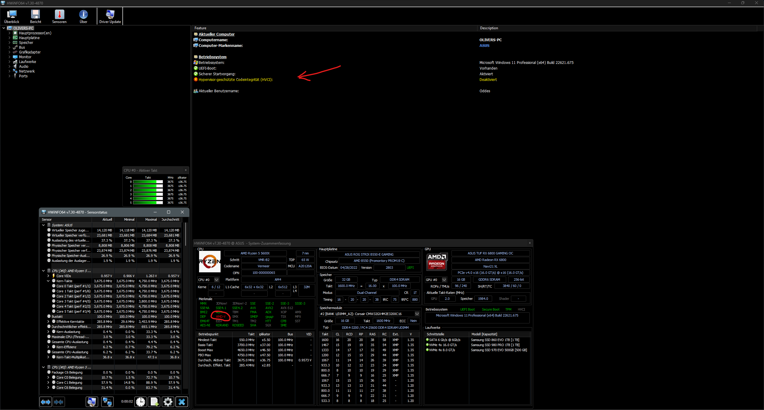 Kernisolierung hab ich im Windows aus. VBS und Hyper V.. Hab ich nichts daran geändert. Was ist das genau?`Oder der SVM Modus. Hab en Intel