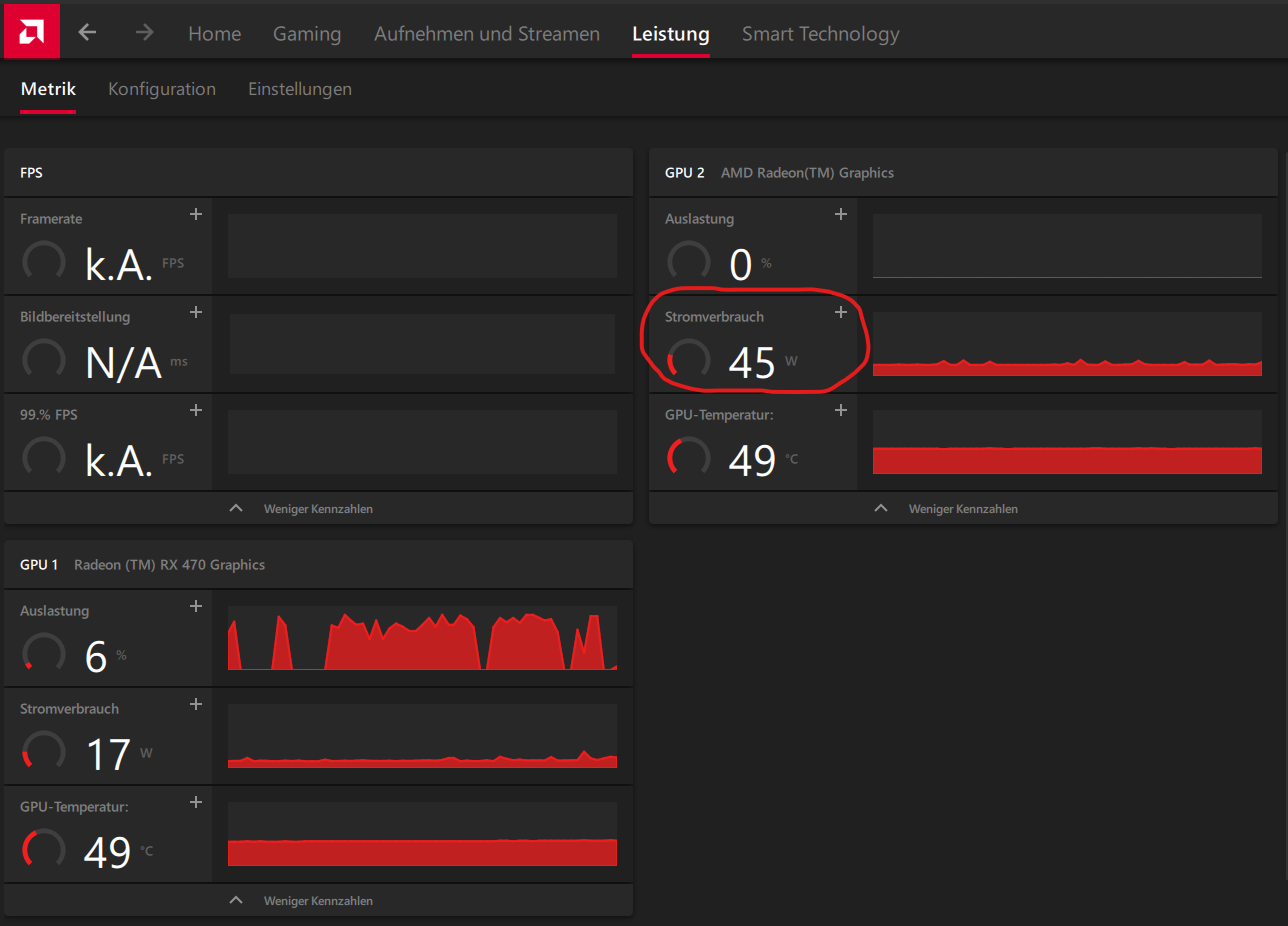 Im AMD Tool werden nun die iGPU und meine RX470 angezeigt.