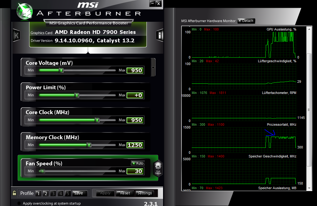 2. Falls ersteres zutrifft, gibt es eine einfache Möglichkeit die Taktraten festzusetzen bzw. Boost abzuschalten? Am liebsten wären mir 850 MHz (also auf normale 7950 runtertakten), da ich sowieso nicht an die Leistungsgrenzen kommen dürfte.