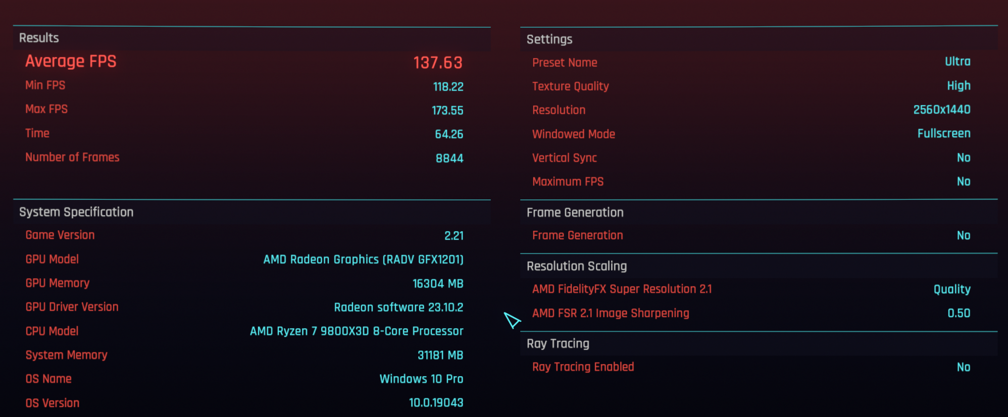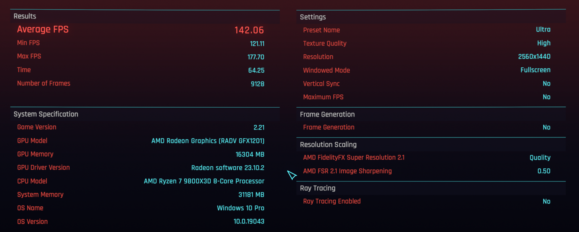 WQHD, unverändertes Ultra Grafik-Preset, Frame Generation OFF: