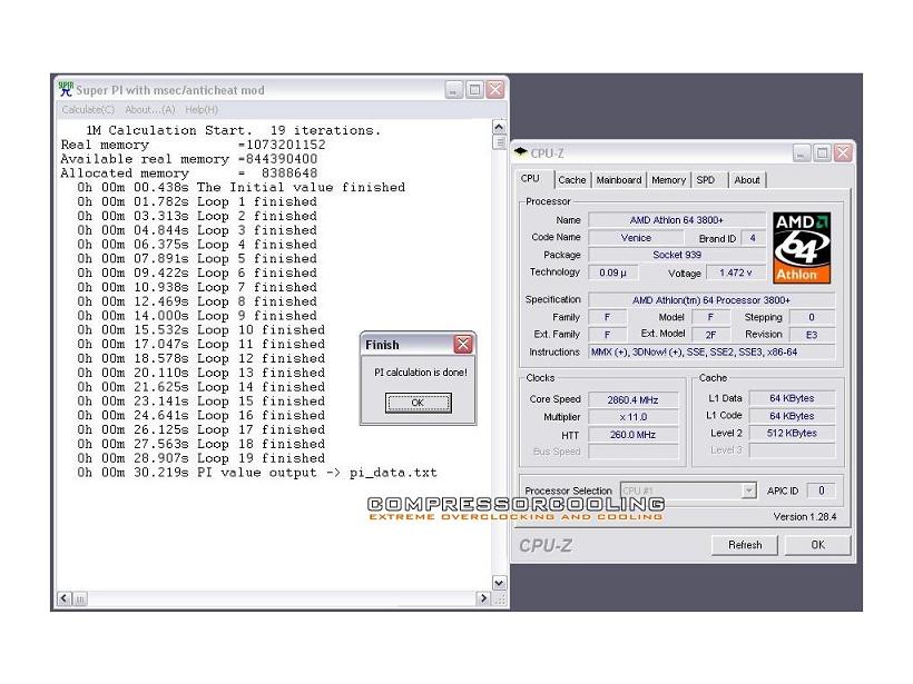 - Und SuperPi 32m(!) in 26:02 stabil auf 290x10=2.900Mhz - mit nur 1,50 Volt: