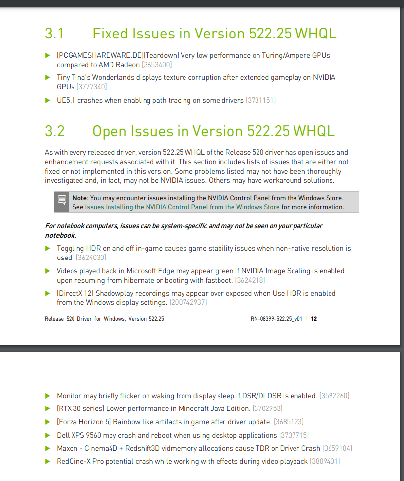 Was man rein statistisch einmal einfach festhalten sollte Nvidia Game Ready Treiber 522.25 Known Issues "9" Probleme die direkt auf den Treiber zurückzuführen sind.