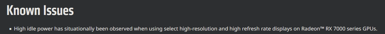 Zudem wurde der Idle Verbrauch bereits mehrfach angegangen, reduziert und Optimiert, auch bei Teillast und beim Video und Streams schauen am etc. Hohe Idle Verbräuche treten nun viel seltener, bei weniger Nutzern und weniger Hardwarekonfigurationen. Zudem betrifft der hohe Idle Verbrauch nur bestimmte Multi-Monitor Konfigurationen. Das Problem ist noch nicht für Alle behoben aber für Viele bzw. für Viele gemildert worden.