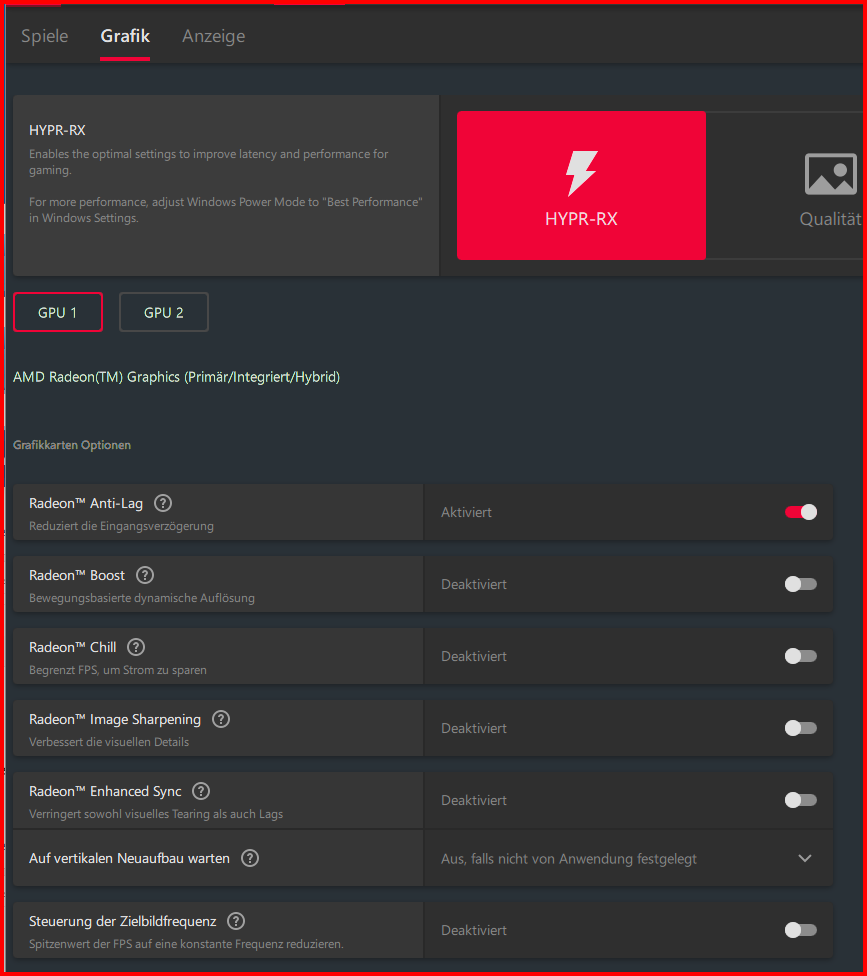 Hyper-RX Eco ist einzig Antilag zzgl. FPS Limit auf immer 60