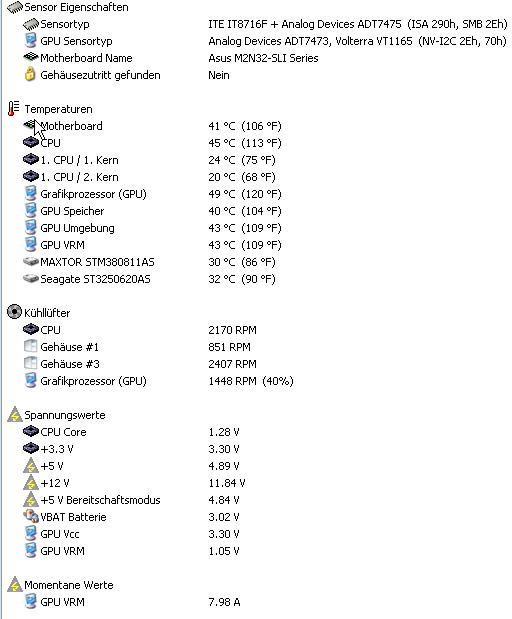 Nochmal zu den Temps. Also 65° CPU Temp liegt noch im grünen Bereich, aber auch nur noch knapp