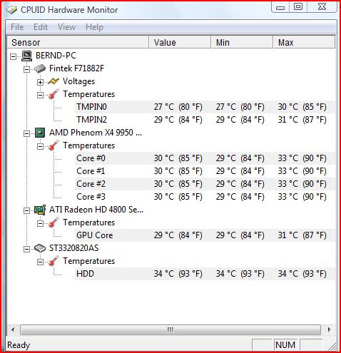 der 2te bleibt immer der Heissere (fast immer um 20°C mehr!) habe die WLP schon erneuert aber das brachte nichts. Ist das einfach ein defekt beim Auslesen oder kann der kaputt sein? (wie gesagt er läuft Stabil nur diese Temperatur Unterschiede finde ich seltsam)