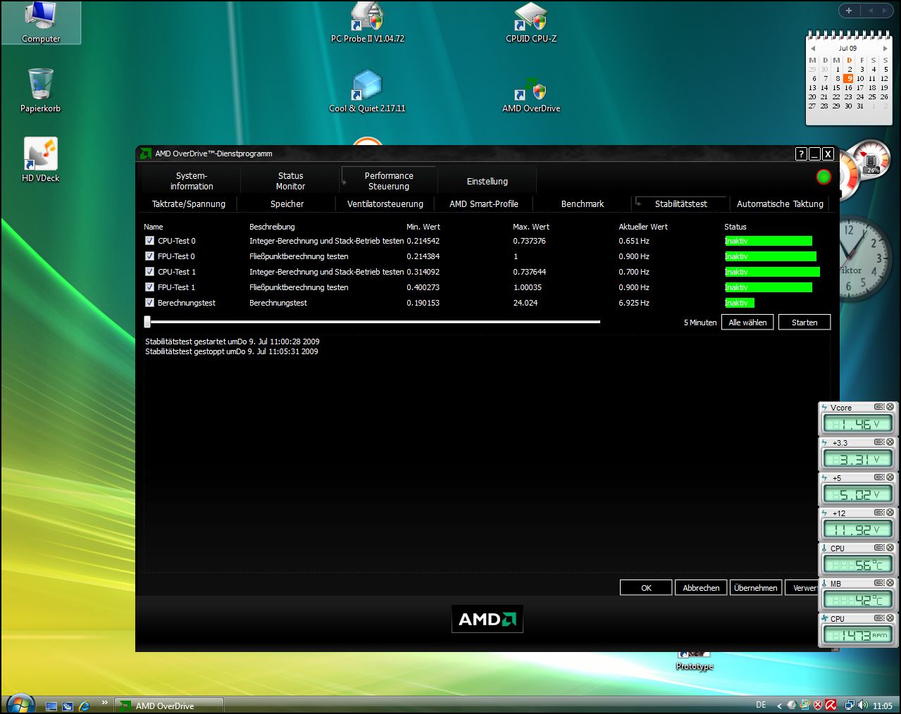 Ansonsten würde ich eher 100Mhz weniger und niedrigeren V-Core bevorzugen.