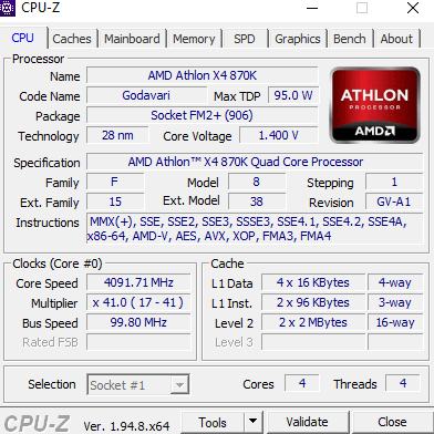 CPU: AMD Athlon X4 870K