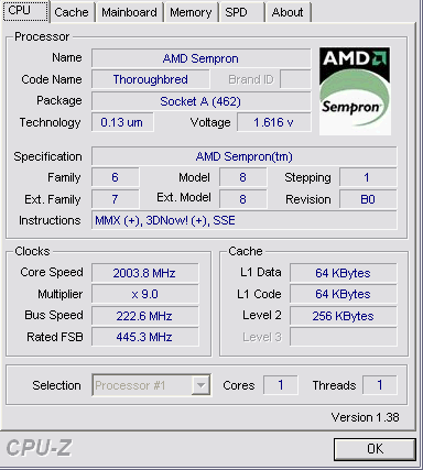 Er hat normalerweise 1,8Ghz aber bei mir hat er 1,67 wie der 2000+ bei einer System überprüfung hat er geben das der CPU auch L2 chache 512KB statt 256KB hat wieso.