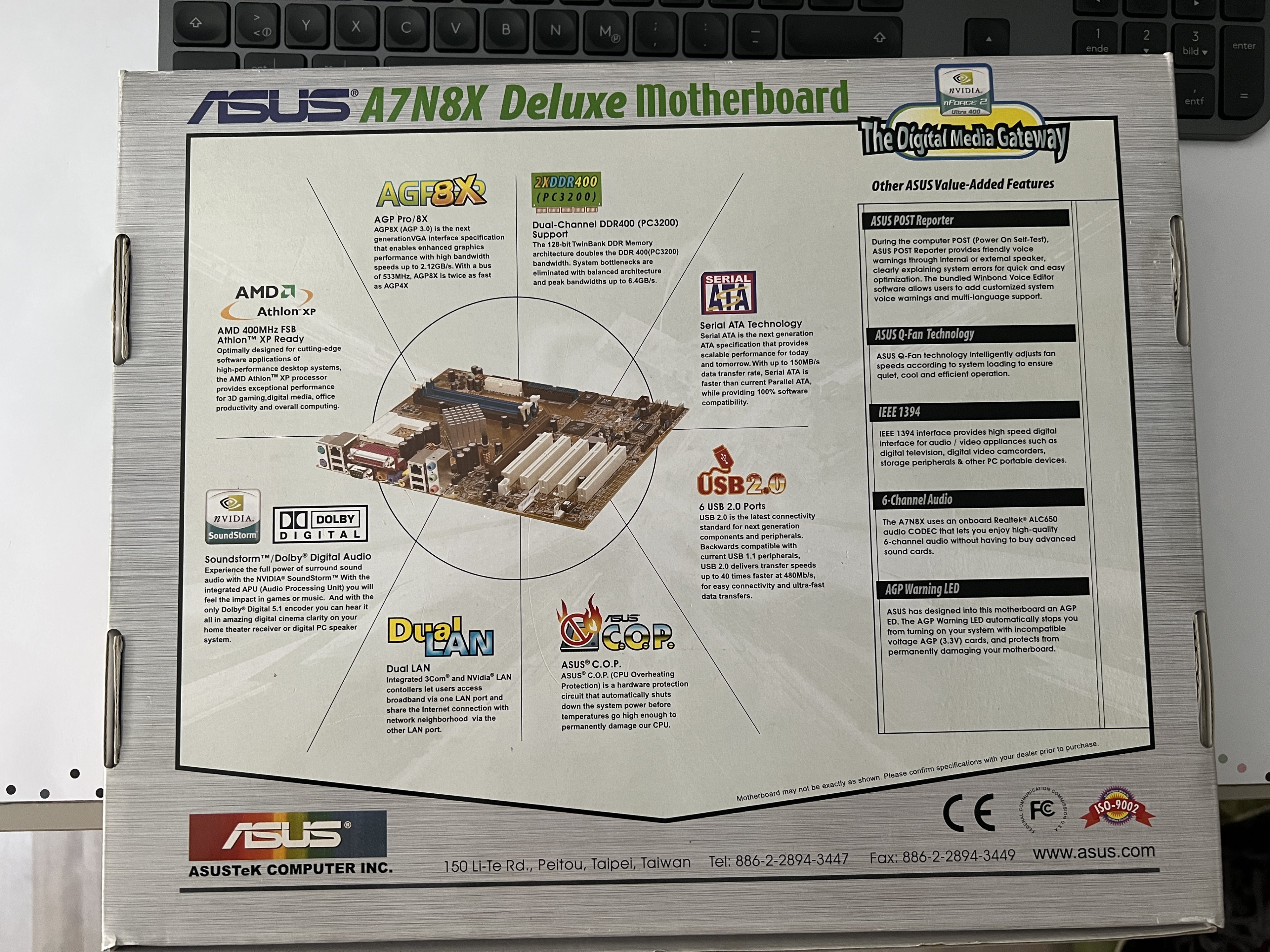 A7N8X Deluxe, ins Mark gebrannt wie den Windows XP CD Key. Oh auf dem Board hab ich auch viele CPUs durchgerockt, am Ende nen XP-M 2500+ der knapp an der 3Ghz Marke schrammte, unter Luft mit 5 Lüftern drum herum voll aufgedreht xD die letzten Mhz wollte er mir nie geben.