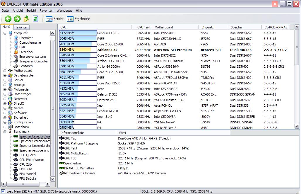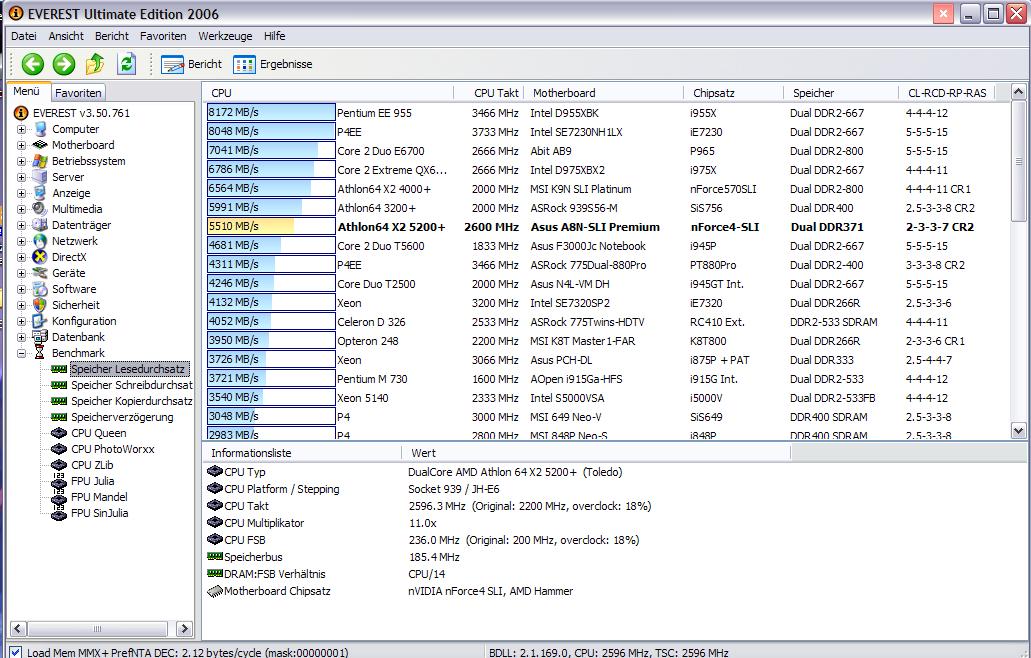 Beim Schreibdurchsatz, Kopierdurchsatz usw. ist es dasselbe Bild, unter 2600 MHz viel schlechter als unter 2500MHZ