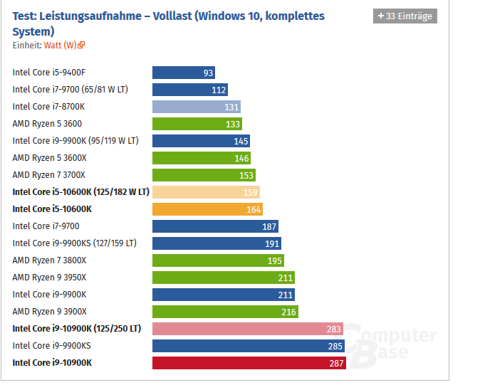 Das ist natürlich für alle AMD Fans eine extrem bittere Pille, dass hier der Idle Verbrauch weiter in den gigantischen Höhen des X570 unterwegs ist. Für Energiesparfüchse ist Intel dabei weiter erste Wahl.