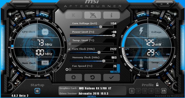 Sapphire RX 5700 XT Pulse @ ~ 2080MHz 1,15V mit Stockkühler