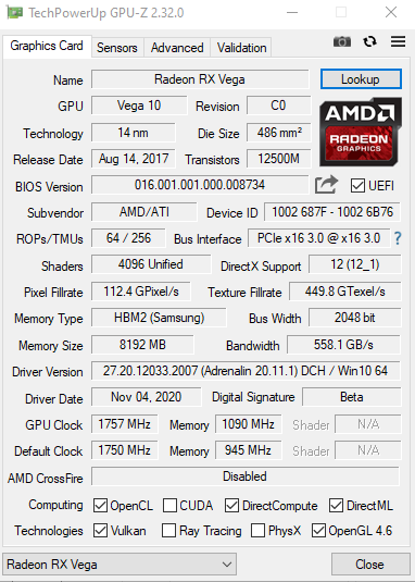 RX Vega 64 Sapphire Nitro+