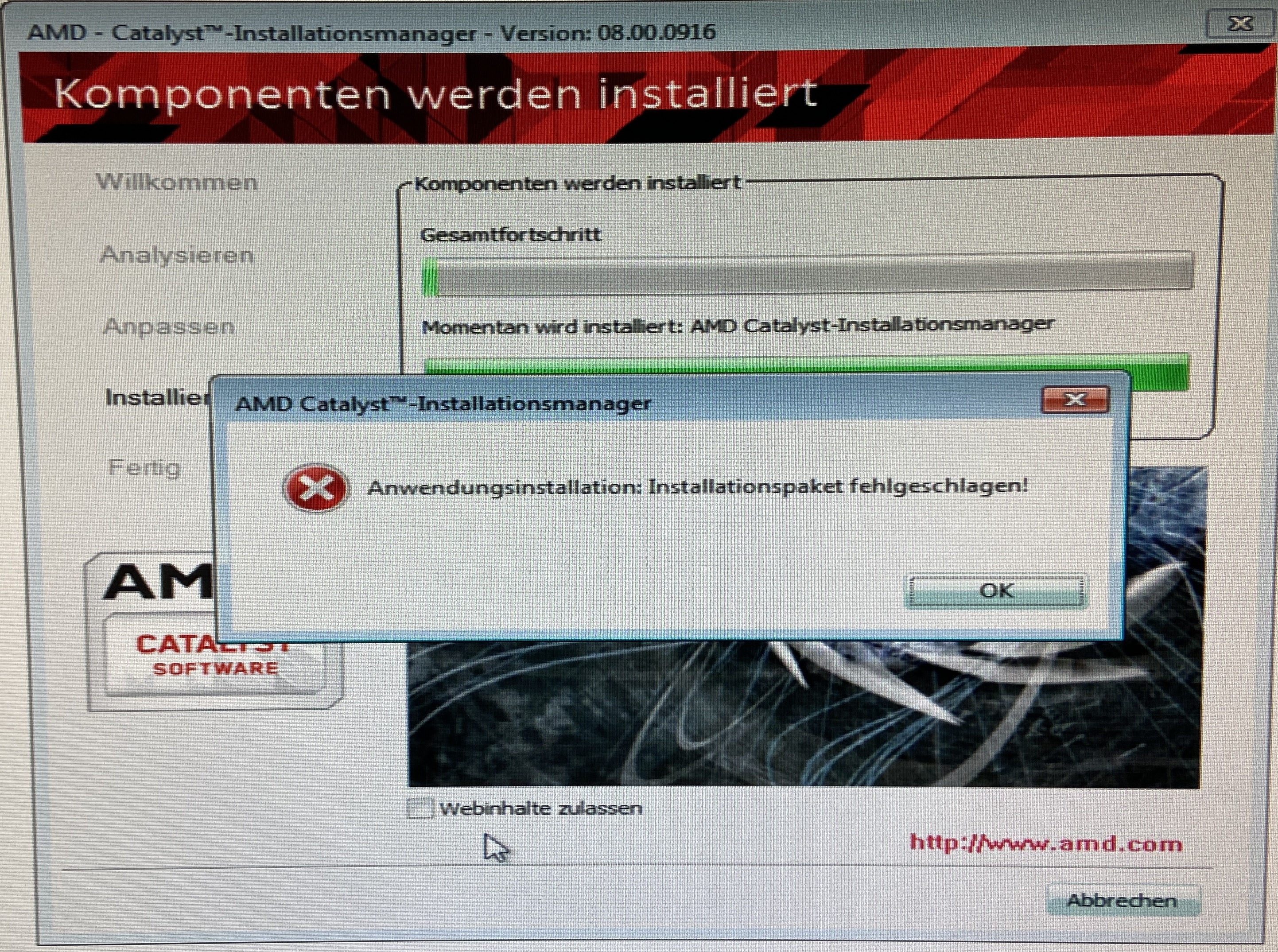Ich bekomme bei der Treiber Installation immer den gleichen Fehler. Siehe Bild.