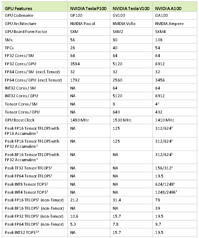 Bezüglich Nvidia spricht der Text richtigerweise V100 an (Volta), in der Tabelle wurde aber Turing/Ampere niedergeschrieben.