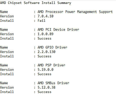 Mir ist aufgefallen, das bei der "AMD Chipset Software" installation der Teil mit dem Namen "Prozessor Management Support" bei mir immer mit einem Fail quittiert wird.