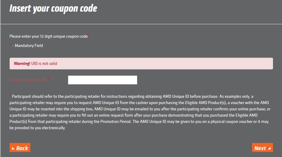 Wenn Du ihm schon den erstellten Steam Key gegeben hast, ist er auf der Amd Seite falsch.