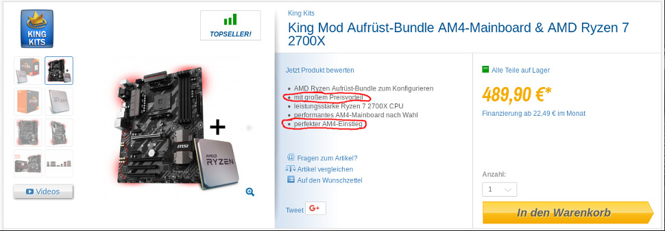 Wenn sich das ändern sollte (das Angebot des Bundles preislich wirklich spürbar günstiger als die Preisesumme der Einzelkomponenten wäre), dann wäre es definitiv eine interessante/noch erschwingliche Option für PC Gaming-Einsteiger und die paar Prozent mehr, die neuere Pinnacle Ridge Prozessoren Gamern (die nicht großartig optimieren/Hand anlegen per OC, etc.) bieten dürften, sollten da kaum auffallen, auch wenn Zen+ erfreulicher Weise in Tests/auf dem Papier einen signifikanten Leistungszuwachs bietet.