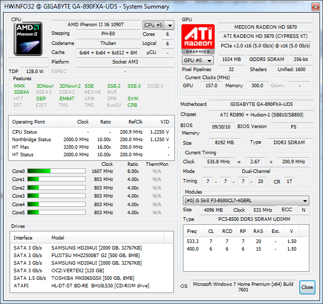 CPU: AMD Phenom X4 9950 125 W