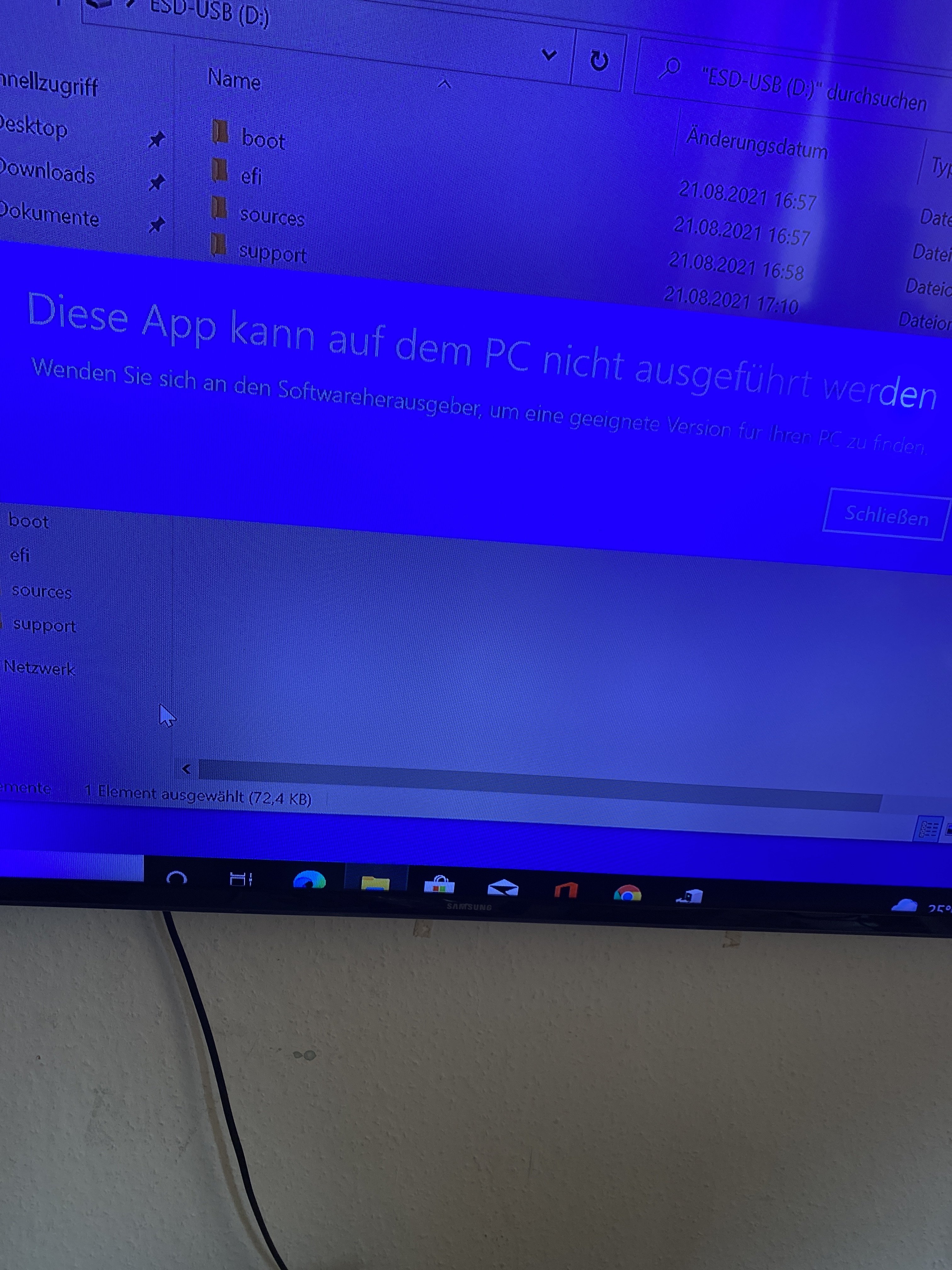 es ist schwer zu lesen weil ich nich vom pc ein screenshot gemacht hab aber dort steht „wenden sie sich an den Softwareherausgeber um eine passende version zu finden“