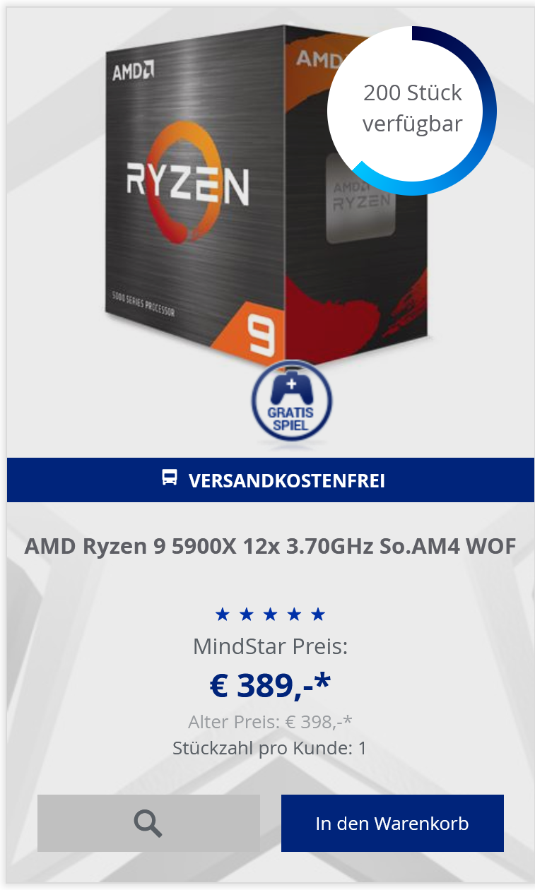 2. Ryzen 5900X (Schnelle CPU preis/Leistung 398€)