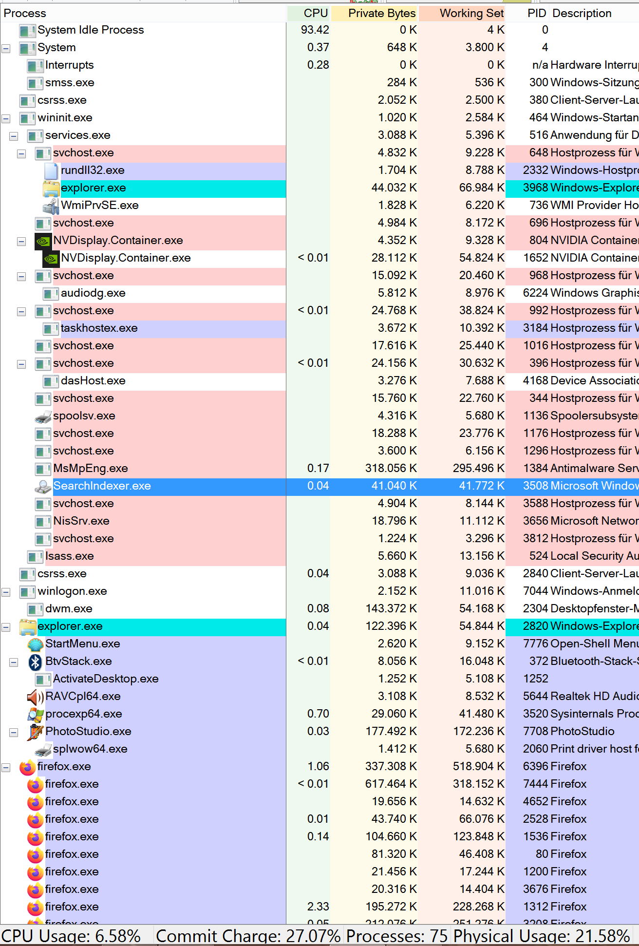 Bitte den Screenshot aus #5 mal noch nach CPU sortieren (in das Überschriftenfeld klicken)