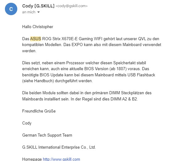 Zerbich schrieb:Ich hab sogar G.Skill per Mail egfragt ob das bei meinem System läuft..